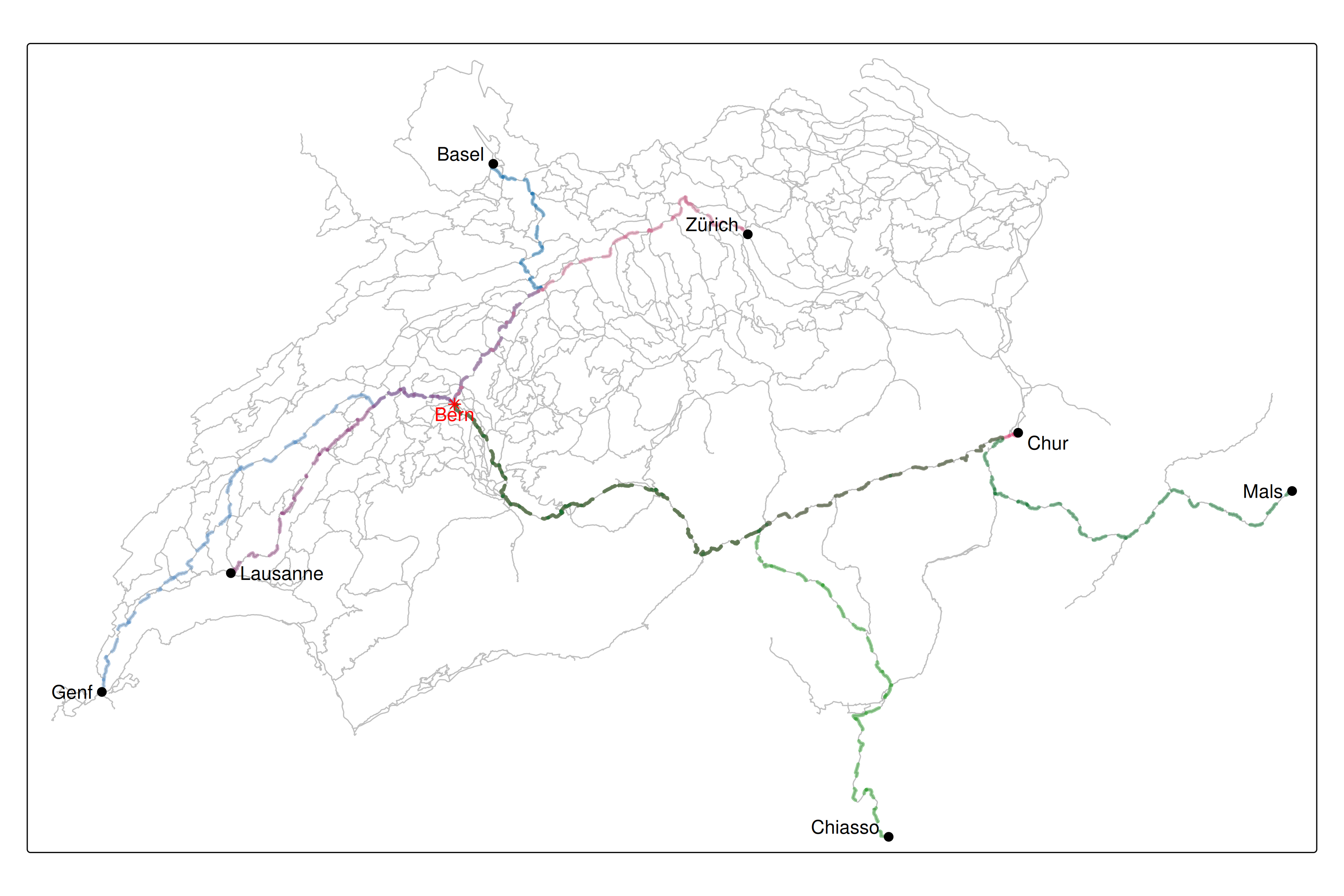 This week, you will do your do your own routing using the Veloland dataset from last week and some points of interestes (locations.gpkg on moodle). Import the two datasets and convert the Veloland dataset to an undirected network using sfnetworks, as you did last week.